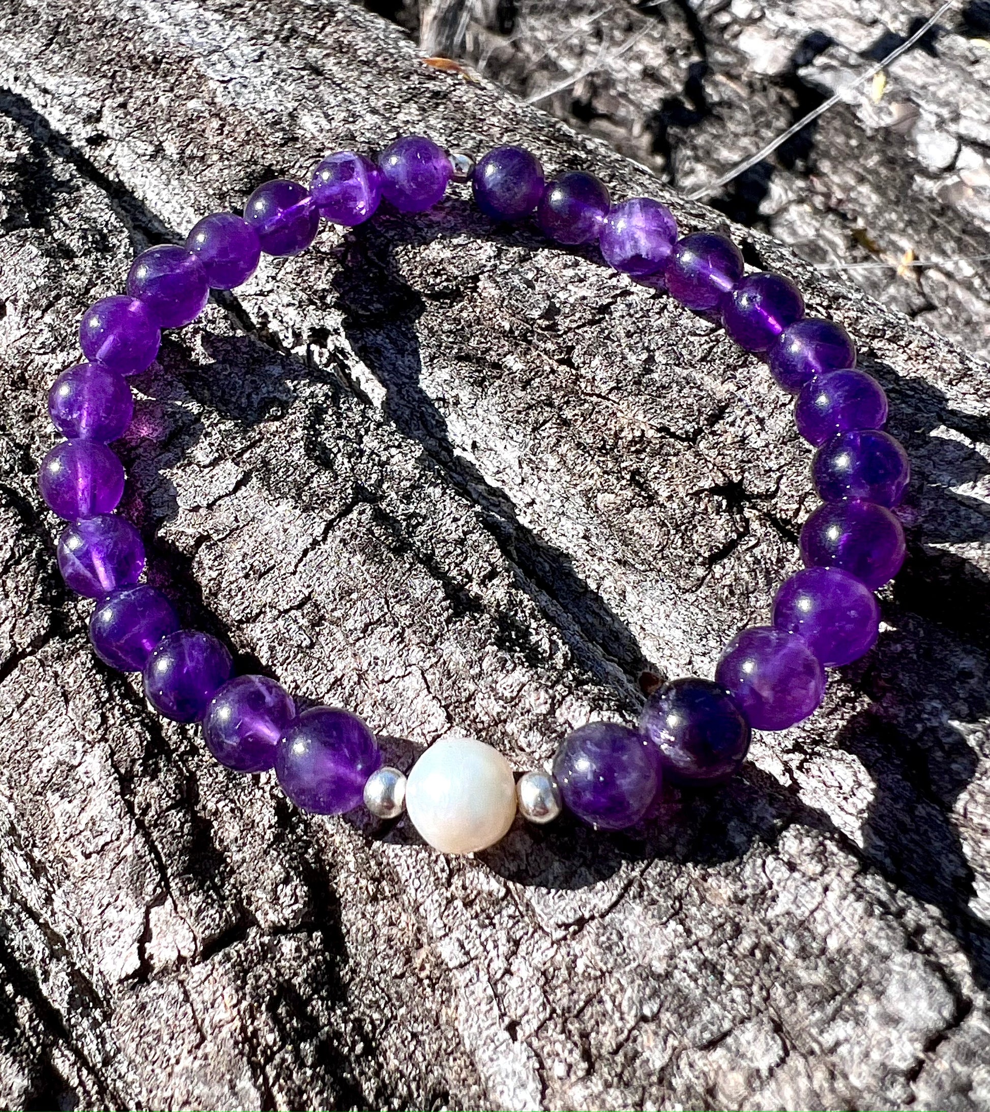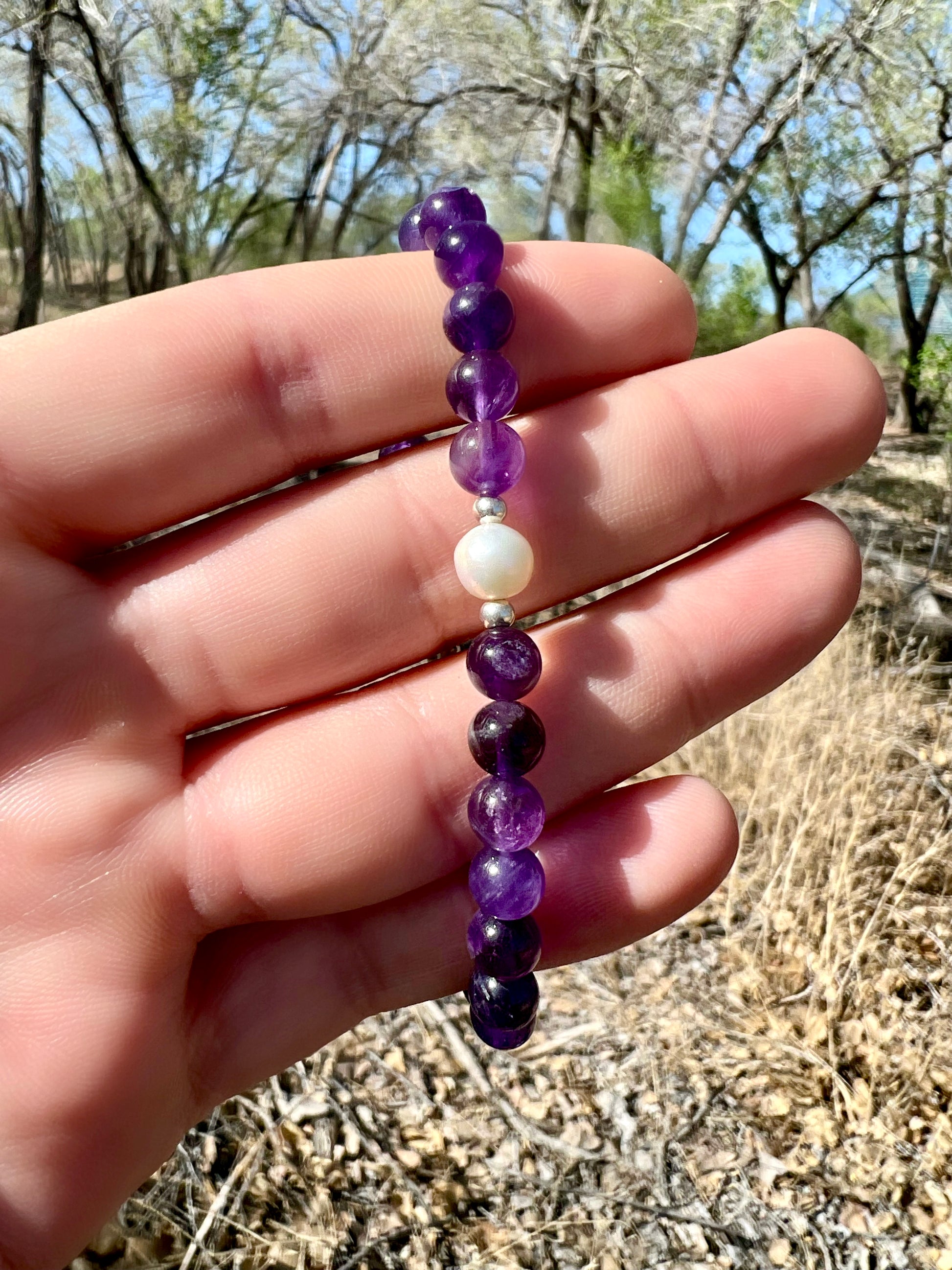Amethyst + Pearl Bracelet with Sterling Silver 💜💟